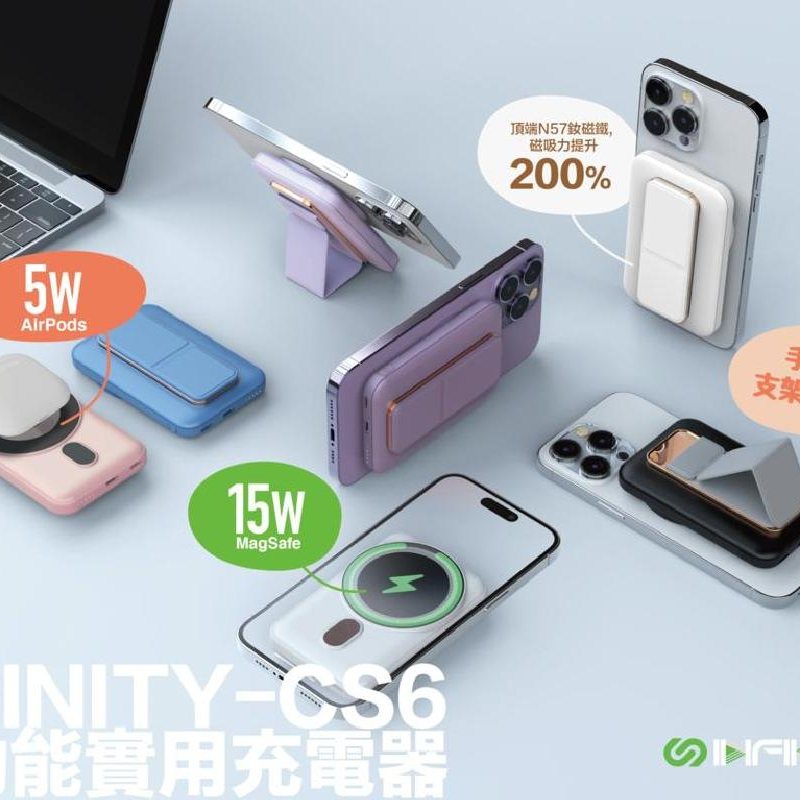 【權威技術 成就最強吸力🔥】 【頂尖最新物料N57釹磁鐵 +200%吸力】 【旗艦型號 INFINITY Cs6】 【第三代半導體材料 (GaN氮化鎵) 】 【完美支持iPHone15 PD快充】 【全港性價比No.1 😍慳30%】 •採用石墨稀技術增加導電傳輸,實現超極細體積 •GaN氮化鎵 體積細散熱好 同時充2部機 •N57釹磁鐵 極限吸力 支援APPLE MagSafe功能 •台灣高品質PVC彷皮 超穩固支架 每款不同色 •6000mAh 激薄設計只有10mm (機身本體) •支援Qi極限15W無線快充 及 AirPods2 •附送磁鐵磁力圈 支持100%無線充技術 • 全球產品責任保險一千萬